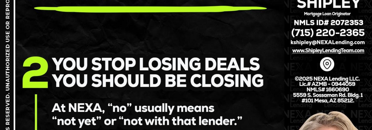 Hi, my name is Krista Shipley. I’m a Loan Officer with NEXA Lending LLC., offering personalized mortgage solutions, fast customized quotes, great rates and service with integrity.