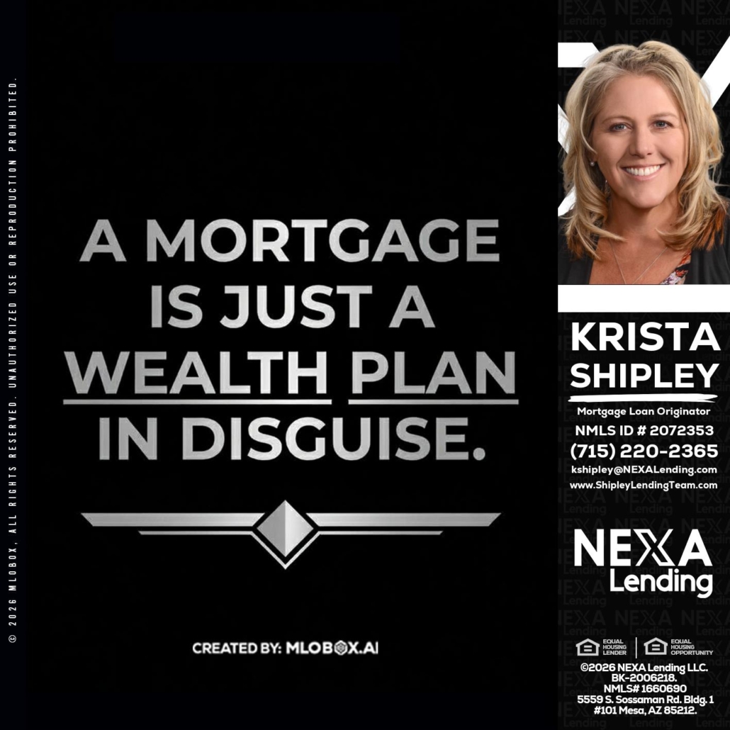 Hi, my name is Krista Shipley. I’m a Loan Officer with NEXA Lending LLC., offering personalized mortgage solutions, fast customized quotes, great rates and service with integrity.