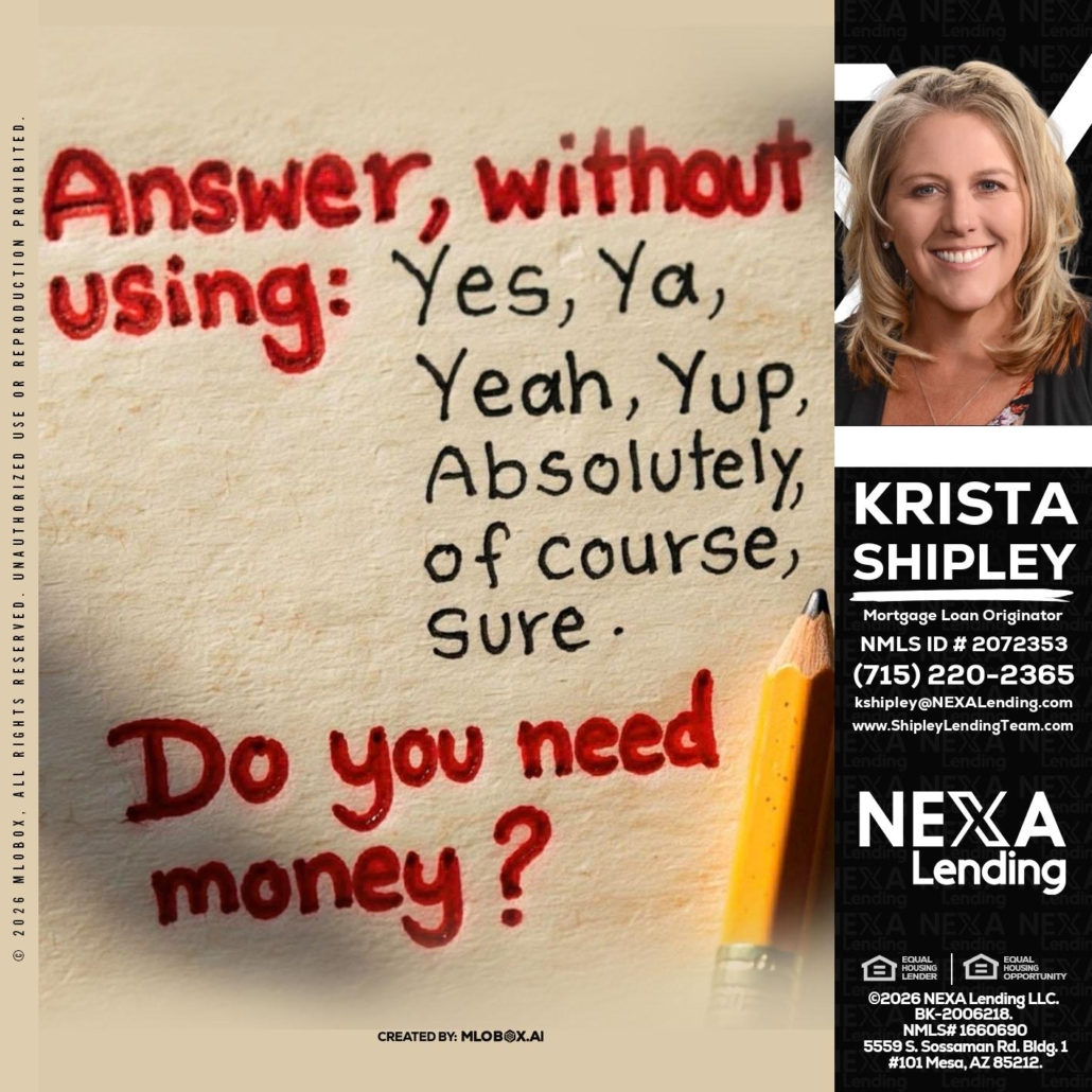 Hi, my name is Krista Shipley. I’m a Loan Officer with NEXA Lending LLC., offering personalized mortgage solutions, fast customized quotes, great rates and service with integrity.