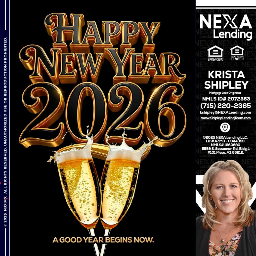 happy new year 2026 - Krista Shipley -Mortgage Loan OriginatorHi, my name is Krista Shipley. I’m a Loan Officer with NEXA Lending LLC., offering personalized mortgage solutions, fast customized quotes, great rates and service with integrity.