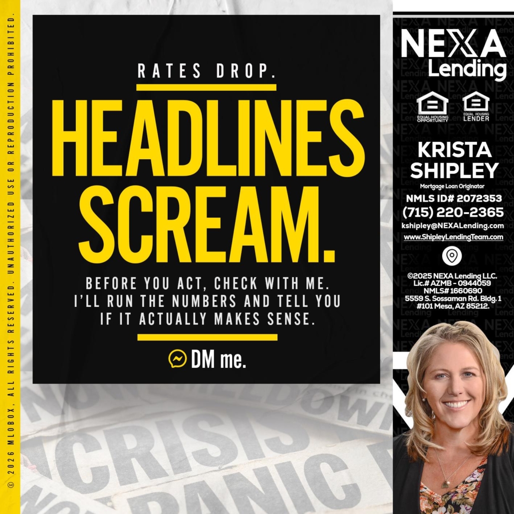 Hi, my name is Krista Shipley. I’m a Loan Officer with NEXA Lending LLC., offering personalized mortgage solutions, fast customized quotes, great rates and service with integrity.