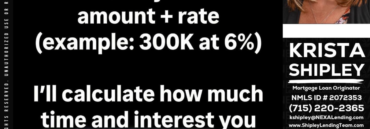 most owners - Krista Shipley -Mortgage Loan OriginatorHi, my name is Krista Shipley. I’m a Loan Officer with NEXA Lending LLC., offering personalized mortgage solutions, fast customized quotes, great rates and service with integrity.