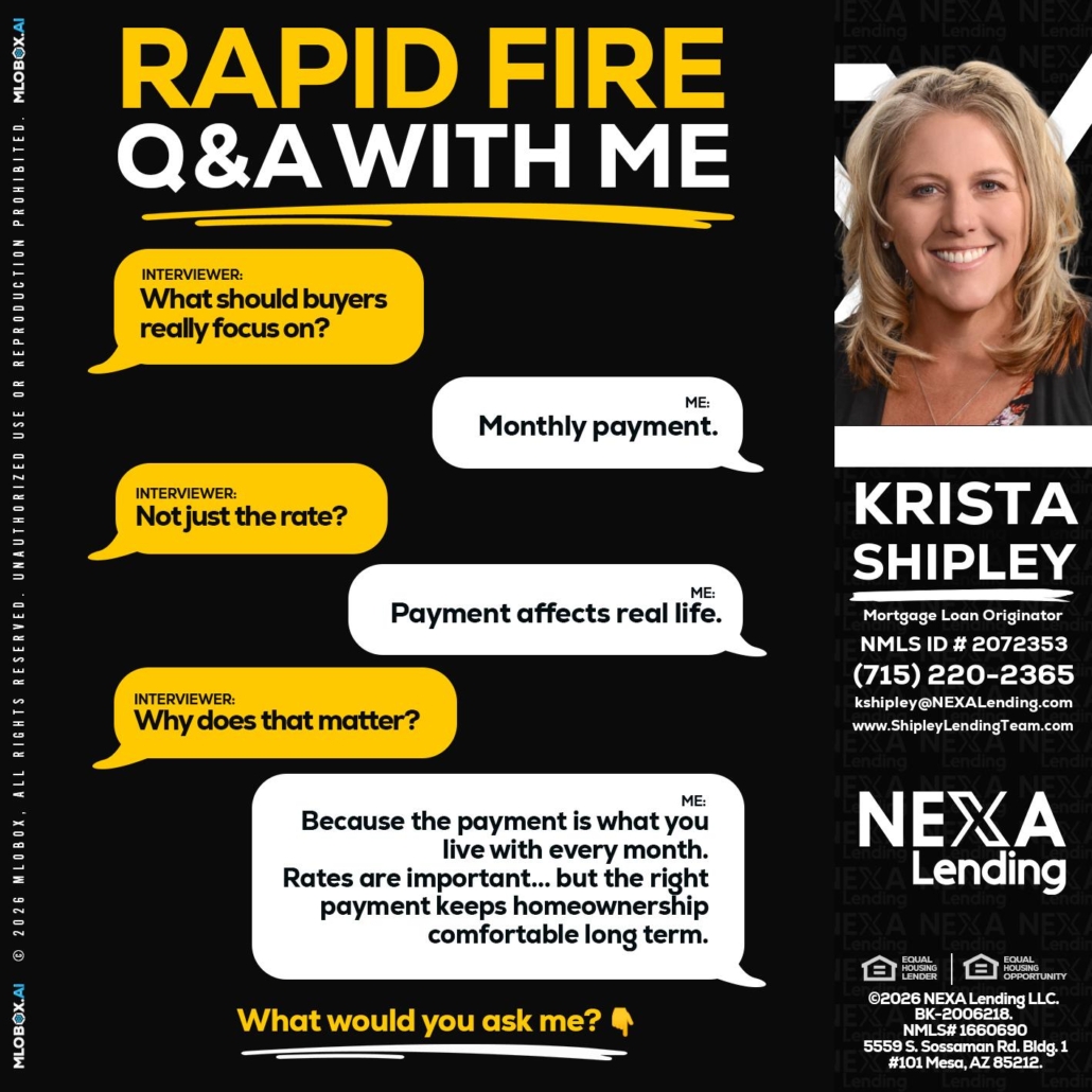 Hi, my name is Krista Shipley. I’m a Loan Officer with NEXA Lending LLC., offering personalized mortgage solutions, fast customized quotes, great rates and service with integrity.