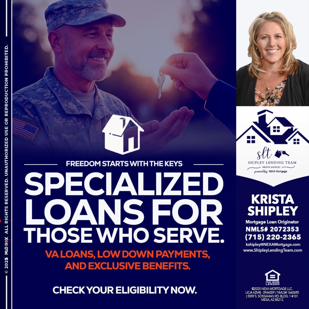SPECIALIZED LOANS - Krista Shipley -Mortgage Loan OriginatorHi, my name is Krista Shipley. I’m a Loan Officer with NEXA Mortgage LLC., offering personalized mortgage solutions, fast customized quotes, great rates and service with integrity.