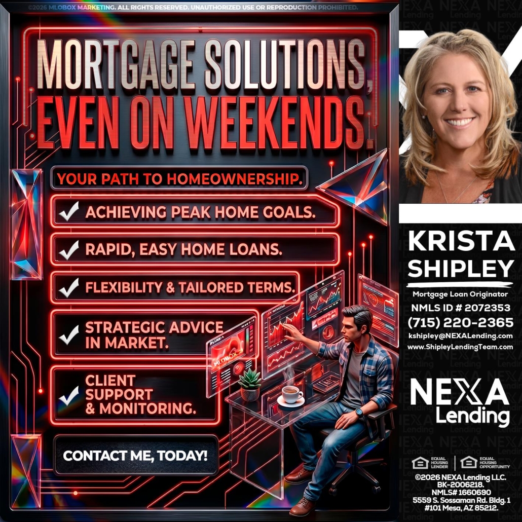 Hi, my name is Krista Shipley. I’m a Loan Officer with NEXA Lending LLC., offering personalized mortgage solutions, fast customized quotes, great rates and service with integrity.