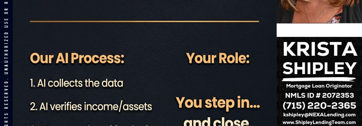WHAT IF YOUR - Krista Shipley -Mortgage Loan OriginatorHi, my name is Krista Shipley. I’m a Loan Officer with NEXA Lending LLC., offering personalized mortgage solutions, fast customized quotes, great rates and service with integrity.