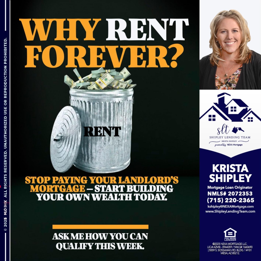 Hi, my name is Krista Shipley. I’m a Loan Officer with NEXA Mortgage LLC., offering personalized mortgage solutions, fast customized quotes, great rates and service with integrity.